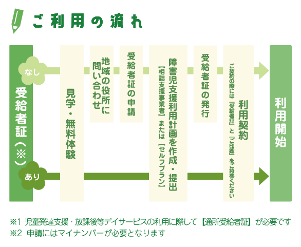 児童発達支援*・放課後等デイサービスは市区町村発行の受給者証があれば9割が自治体負担となり、1割が自己負担となる制度です。